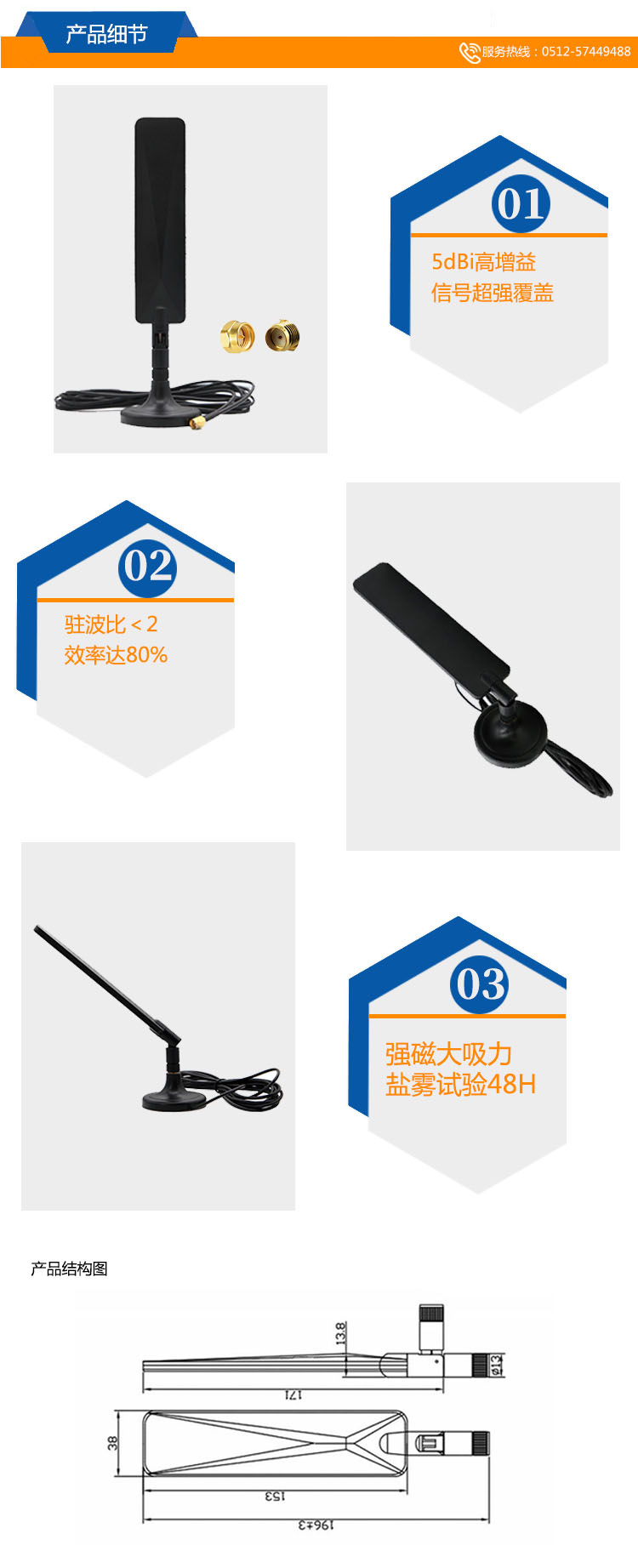 產(chǎn)品增益:5dBi